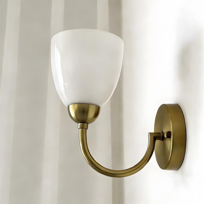 De Mild Velin wandlamp combineert op elegante wijze eigentijds design met ingetogen luxe. De slanke, ronde kap van mat glas verspreidt het licht subtiel en wordt omlijst door een verfijnde messing arm die sierlijk meebuigt en een harmonieus silhouet creëert. Verkrijgbaar in zachte tinten zoals blushroze en klassiek wit, biedt de lamp een warme, uitnodigende gloed, waardoor hij perfect is voor slaapkamers, woonkamers of als accentverlichting in de hal. Met zijn tijdloze design verrijkt de Mild Velin wandlamp elke ruimte met een vleugje verfijning en subtiele charme.