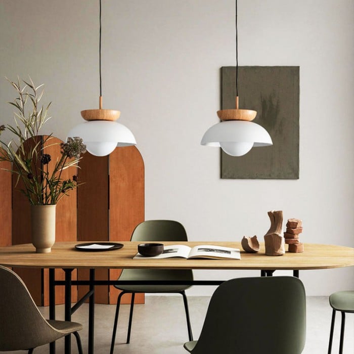 Scandinavische Semi-bol Houten Hanglamp HL100