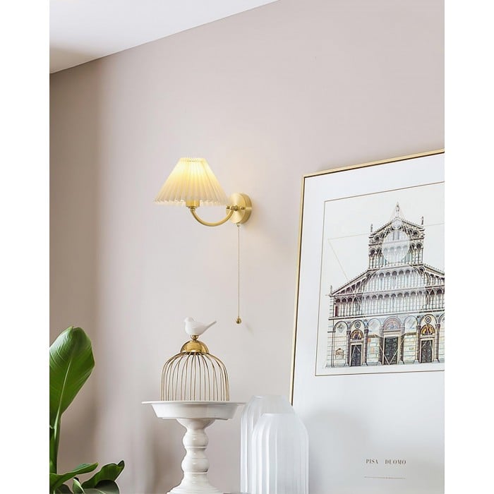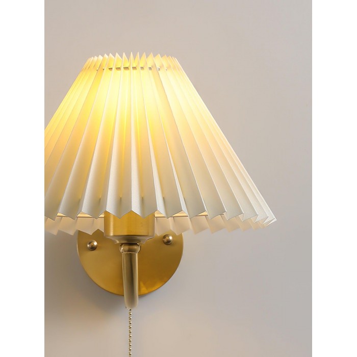 Deze prachtige moderne minimalistische luxe stoffen messing wandlamp is een luxe toevoeging aan elke ruimte, met zijn sierlijke gebogen armen en minimalistische details. De witte geplooide lampenkap voegt een gepolijste en verfijnde touch toe aan de algehele esthetiek van de lamp, waardoor een prachtige look ontstaat die elke omgeving zal upgraden.