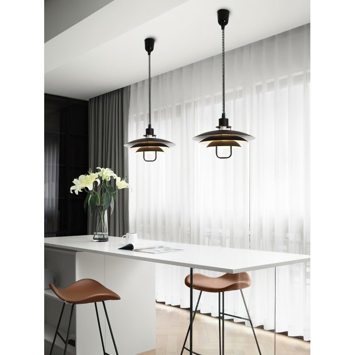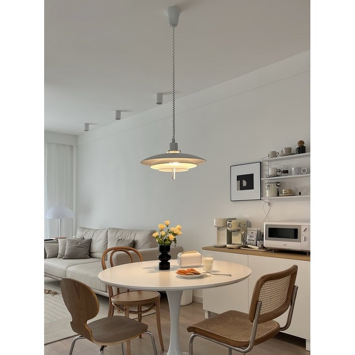 Til uw ruimte naar een hoger niveau met de Danish Lifting UFO Pendant Lamp. Deze verbluffende lamp heeft drie schermen in uitdijende concentrische cirkels, wat een moderne en elegante esthetiek creëert. Perfect geplaatst boven uw eet- of salontafel, voegt het een vleugje verfijning toe aan elke kamer. Upgrade uw decor met dit vakkundig ontworpen stuk.