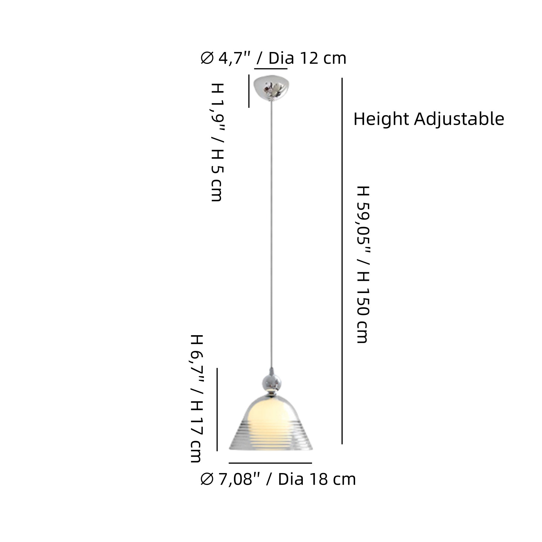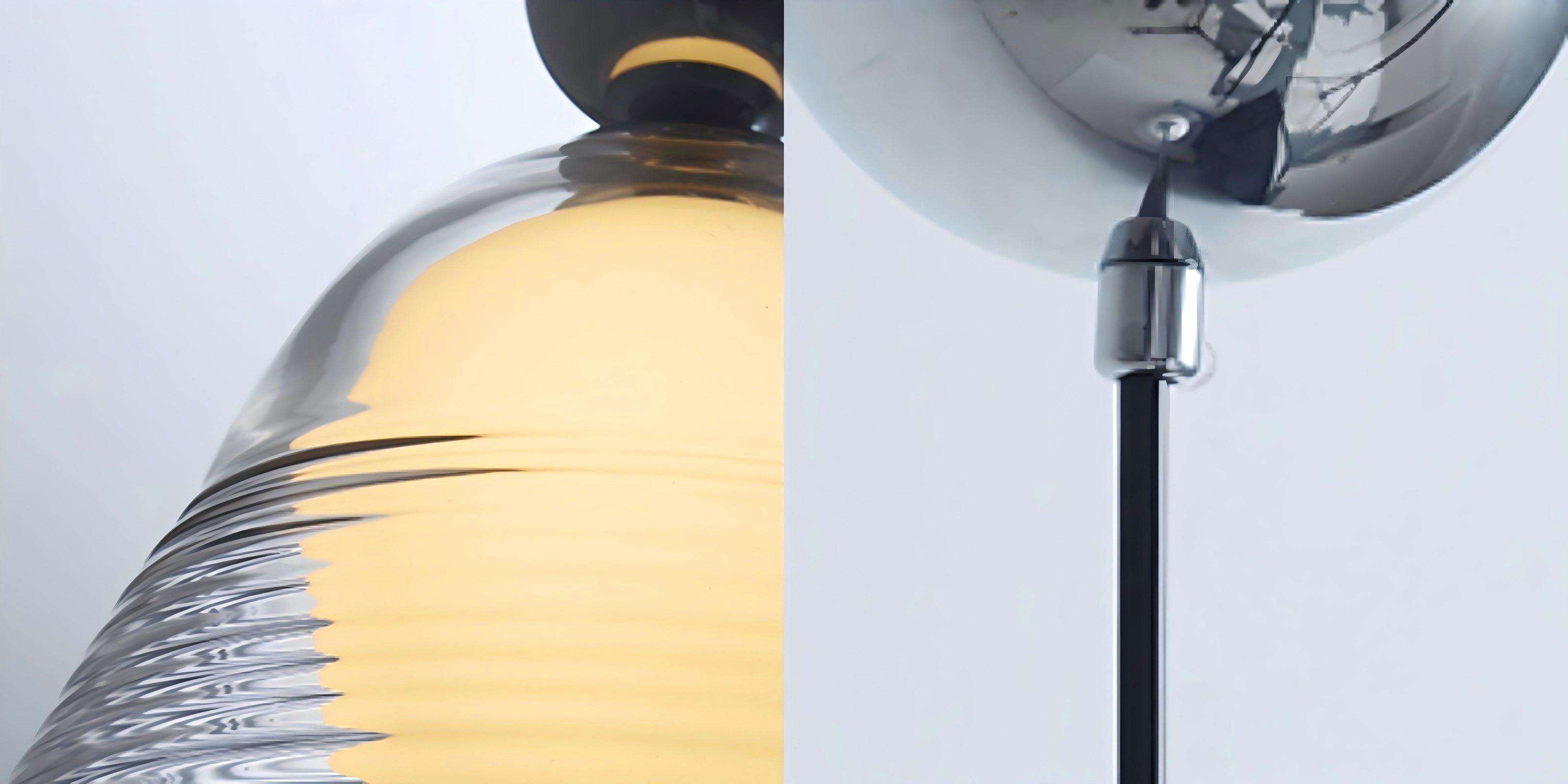 De Afterglow Sunset hanglamp, gemaakt van geribbeld glas met chromen details, weerspiegelt de geest van Bauhaus-design. De zachte, emotionele gloed voegt warmte en diepte toe aan elke ruimte – perfect voor het verlichten van entrees, nachtkastjes of creatieve studio's met moderne charme.