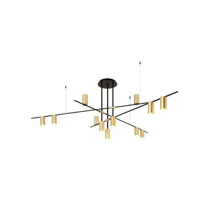Tribes kroonluchter is geïnspireerd op de Calumet, die heilige pijpen die worden gerookt door de inheemse stammen van Noord-Amerika. Tribe kroonluchter beschikt over drie buizen van 55 inch breed met één 47,24 inch, één 51,18 inch en één 55,11 inch hoogte pijp. Twee downlights en één uplight per buis. Zwarte ronde luifel. Zwart gelakte structuurafwerking met zwarte of vergulde lampen. Tribes kroonluchter is een zeer grafisch en minimalistisch ontwerp en past perfect in de meest eigentijdse ruimtes, maar ook in klassieke of vintage interieurs.