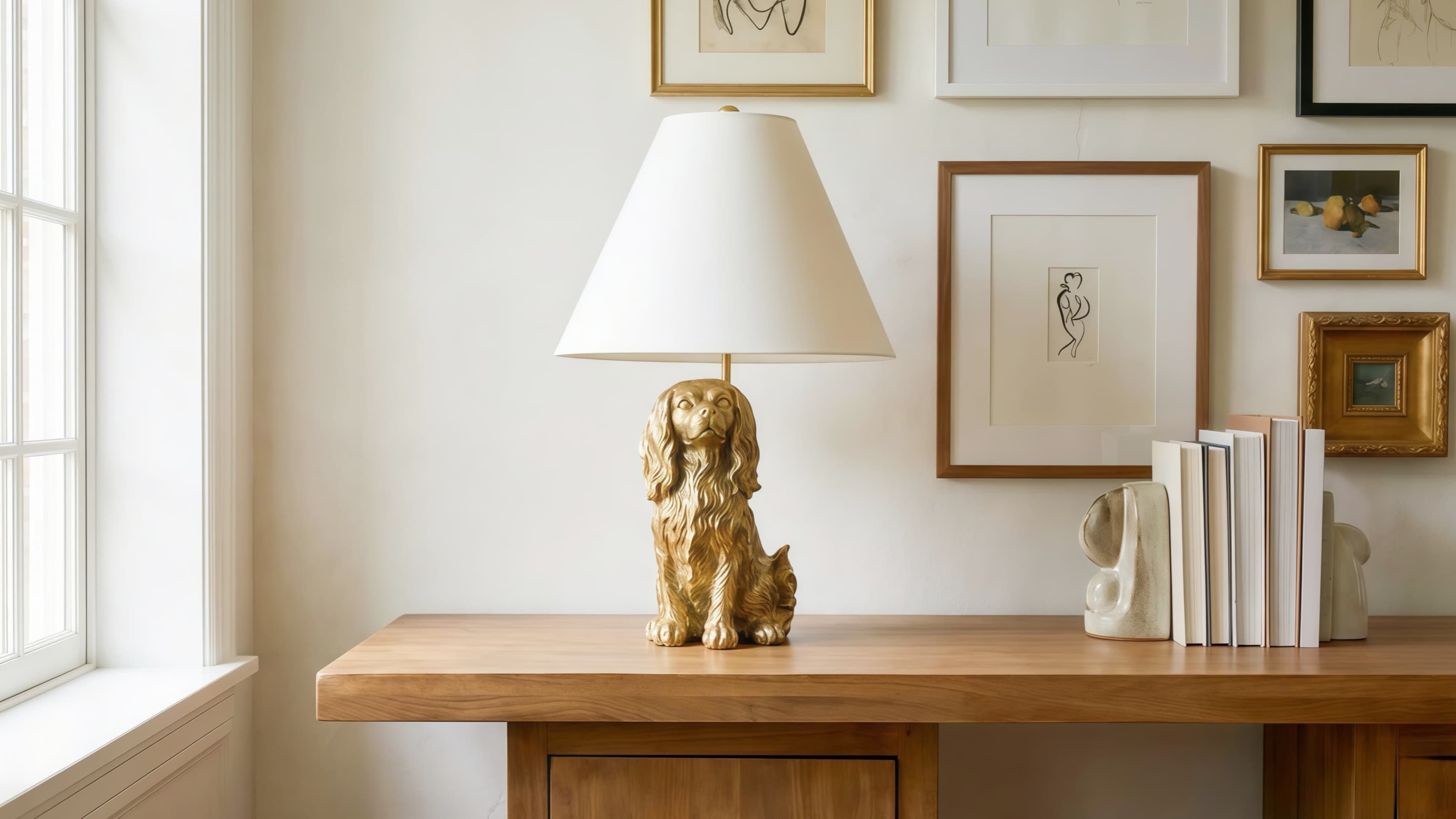 Deze sculpturale tafellamp in de vorm van een dier combineert speelse kunst met alledaagse functionaliteit. Ontworpen als een decoratief beeldje met verfijnde details, voegt het warmte en karakter toe aan nachtkastjes, bureaus of planken en creëert het een gezellige, sfeervolle gloed in moderne en eclectische interieurs.