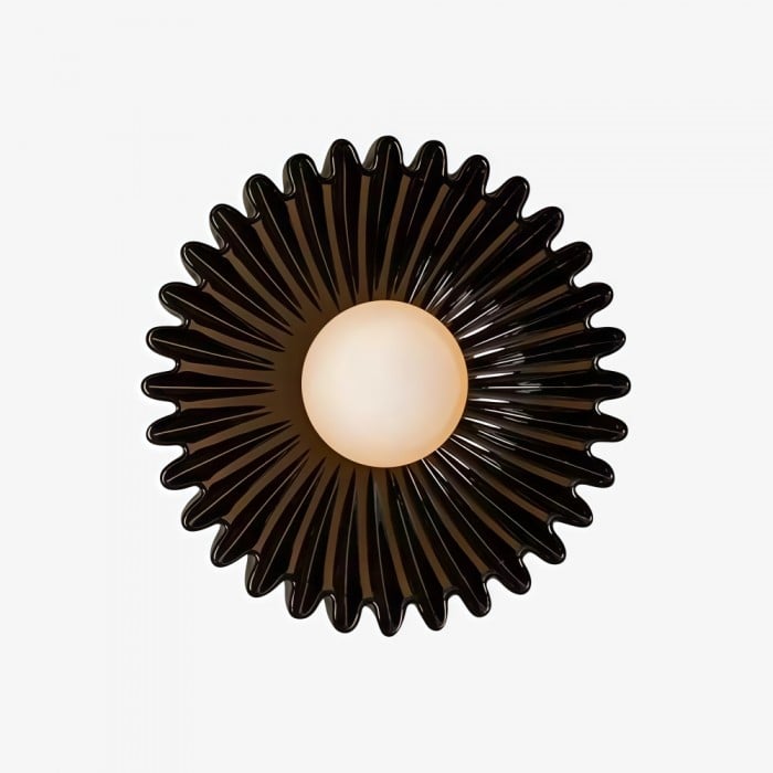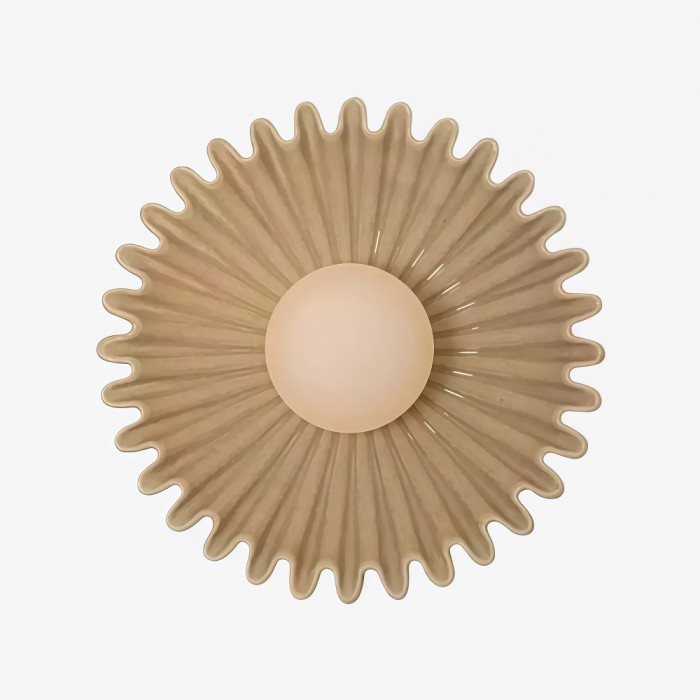 Vägglampan med plastskärm och keramisk blomma exemplifierar en sofistikerad blandning av funktionalitet och stil. Tillverkad med en robust keramisk bas och en fint gjuten plastskärm, framkallar denna armatur den naturliga elegansen hos en blomma i blom. Plasten sprider ljuset mjukt och säkerställer ett varmt och välkomnande sken som förbättrar vilken miljö som helst. Denna vägglampa är designad för lång livslängd och estetisk tilltalande och är ett perfekt val för utrymmen som uppskattar en modern touch samtidigt som den hedrar klassiska designprinciper.