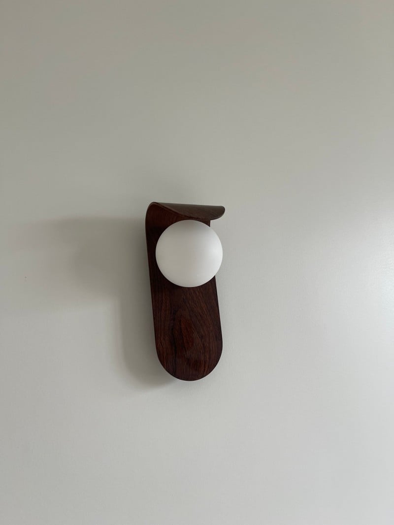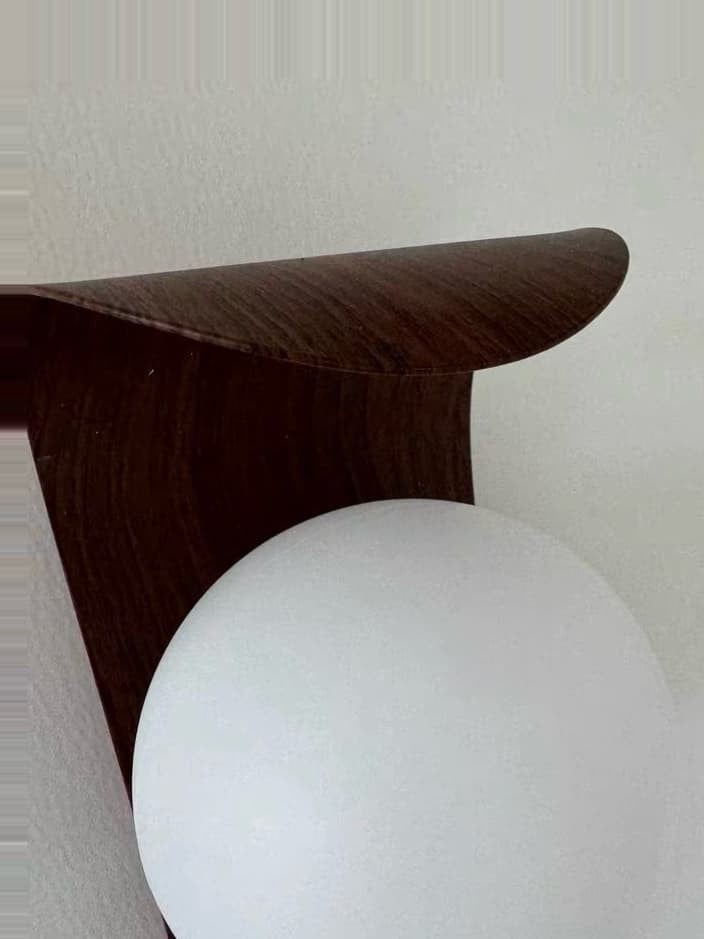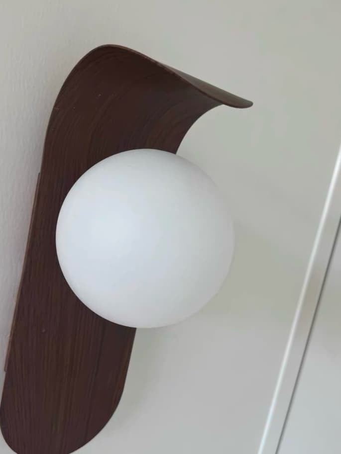Wabi-sabi Style Fashion Vägglampa ingjuter modern sofistikering i tidlös design. Med en graciöst böjd träbas med vattenöverföringstryck i utsökt träfärg eller rik valnötsfärg, vaggar den en frostad akrylklot som sprider ljuset varmt. Lampans unika blandning av modern estetik och hantverksmässigt hantverk gör den till ett statement som förvandlar alla utrymmen med sin subtila elegans och inbjudande glöd.