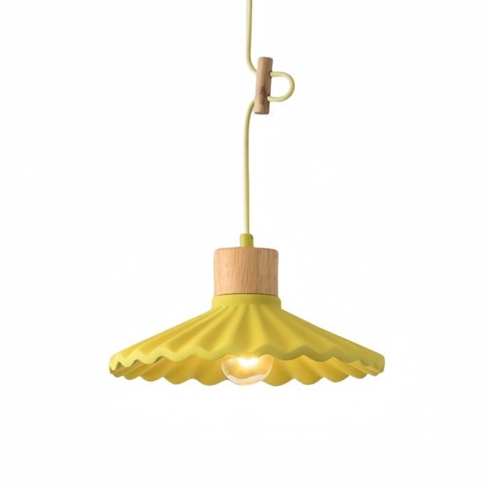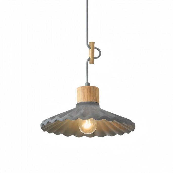 Denna Macaron-pendellampa har en unik texturerad skärm med skulptural dragningskraft. Den veckade pendellampan skapar fängslande ljusmönster genom sin vikta cementform. Som cementpendellampa kombinerar den industriell materialitet med raffinerad estetisk känsla.