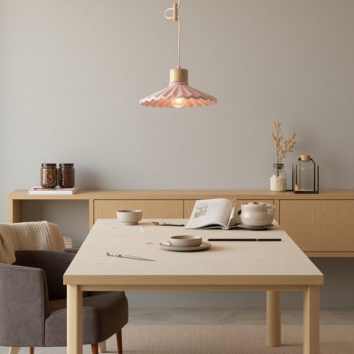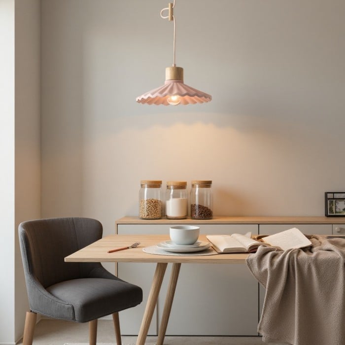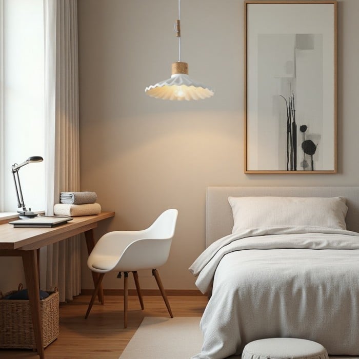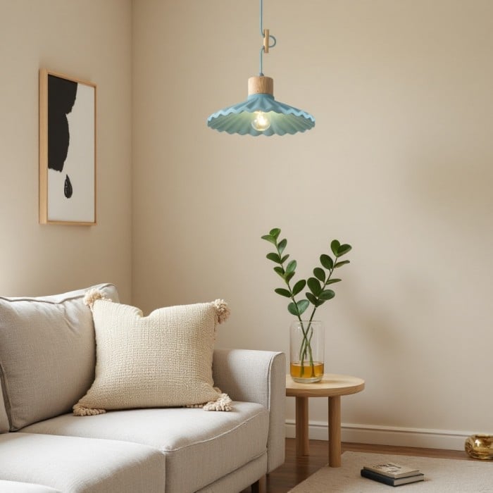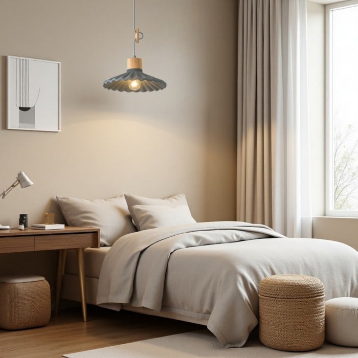 Cement Macaron Pendellampa - Modern Plisserad Skärm för Hall HL1328