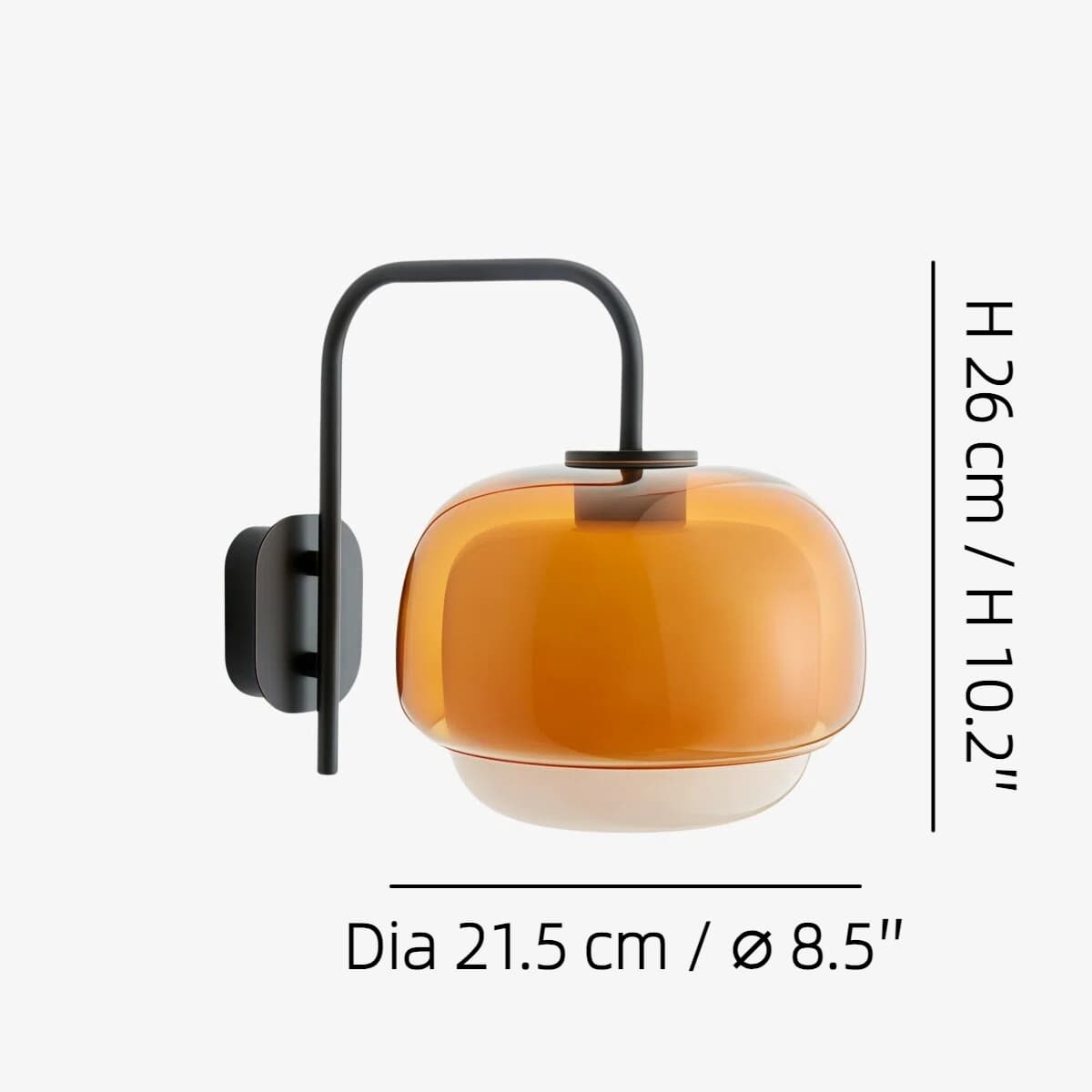 - Dia 21,5 cm x H 26 cm / ∅ 8,5 tum x H 10,2 tum