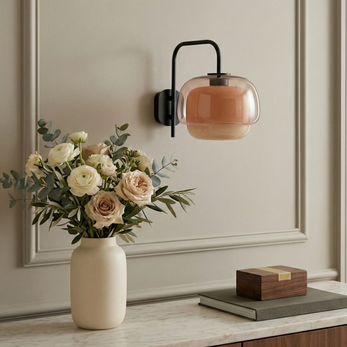 Vägglampa i färgad glasmetall
