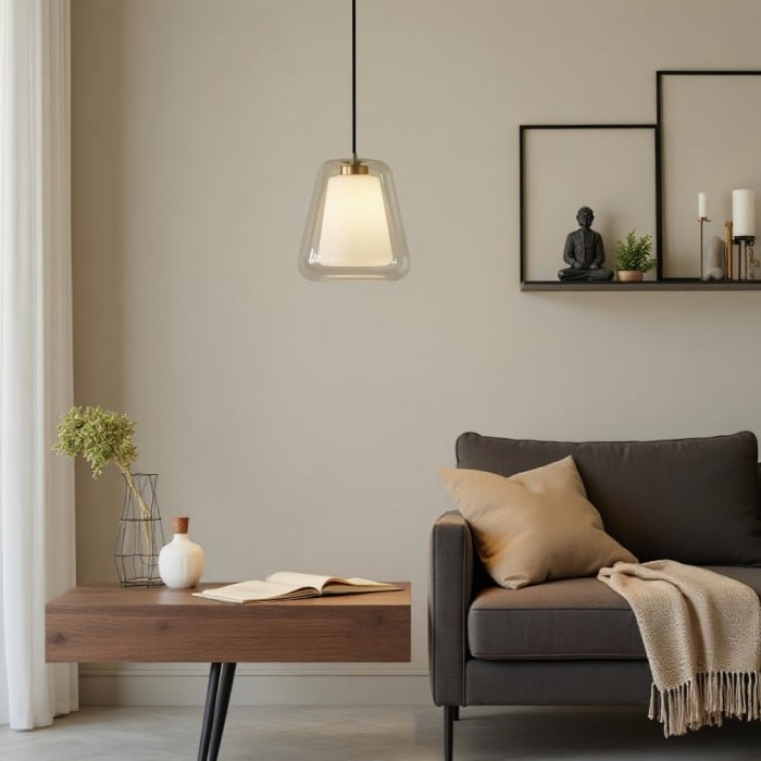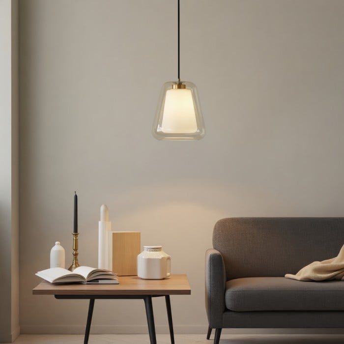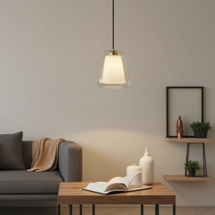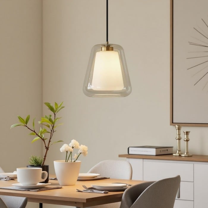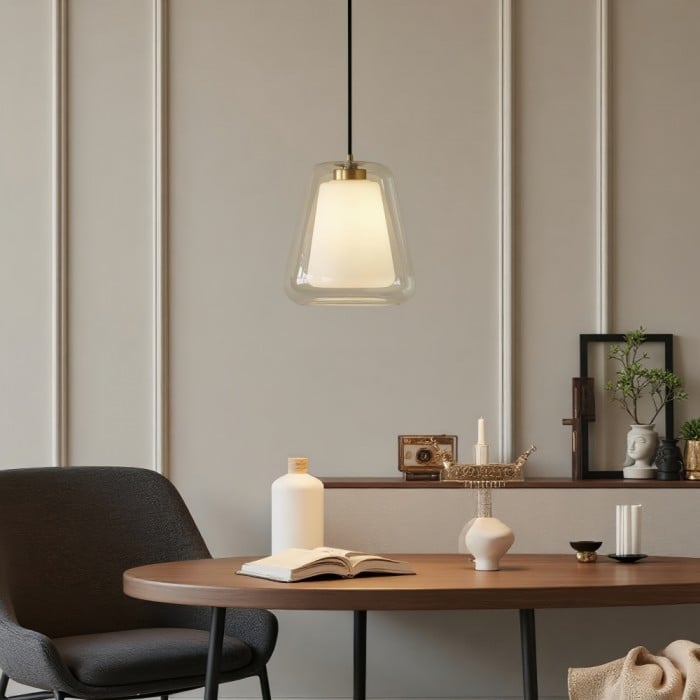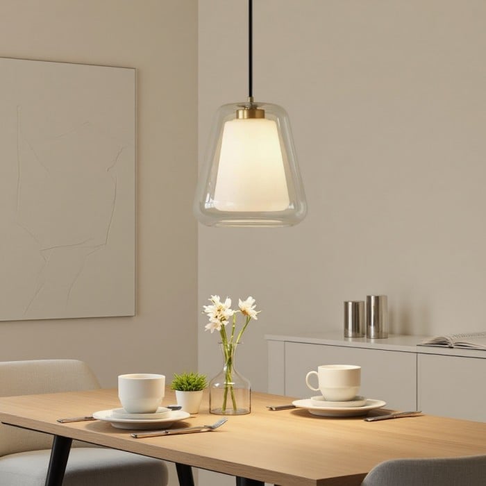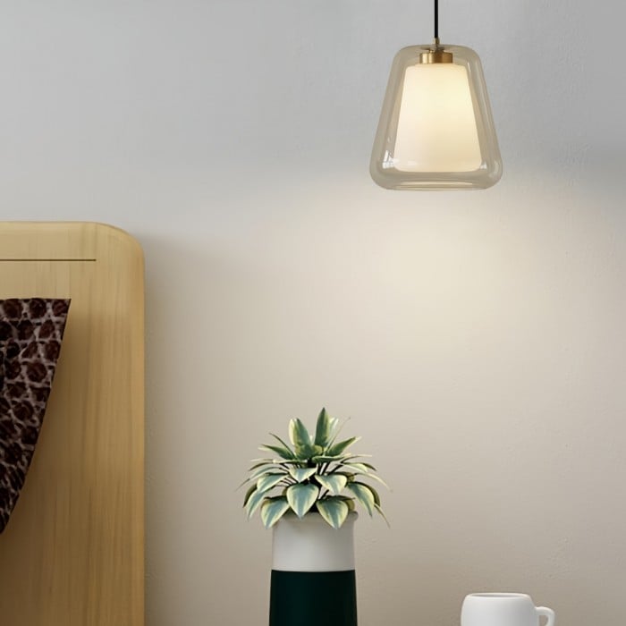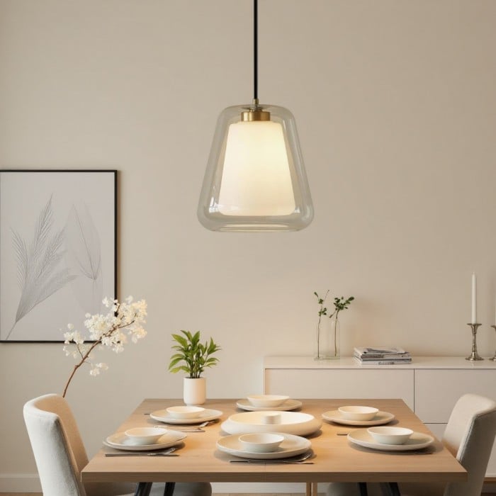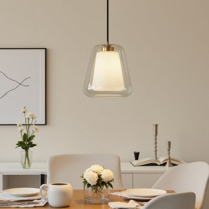 Denna pendellampa i glas har en elegant flaskformad silhuett som ger modern elegans till alla rum. Den klara glaspendellampan erbjuder utmärkt transparens och skapar ett starkt och obehindrat ljus. Dess flaskformade pendellampa kombinerar tidlös form med modern funktion för ett mångsidigt utseende.
