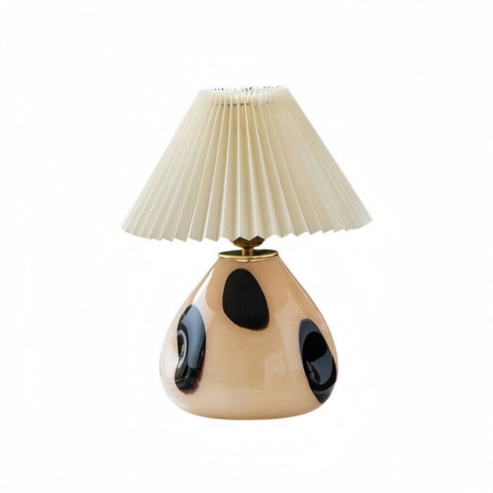 Sängbordslampa i tyg - Mjölkglasfot med veckad skärm HL1321