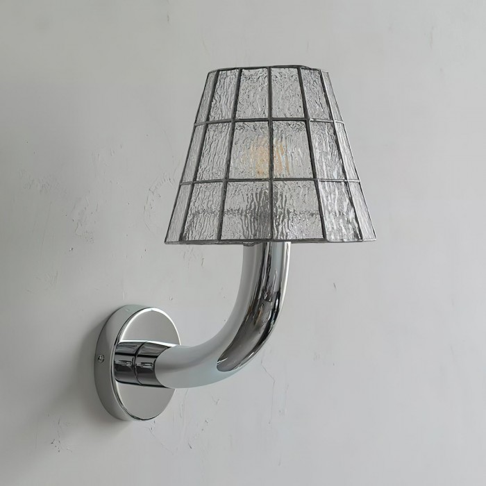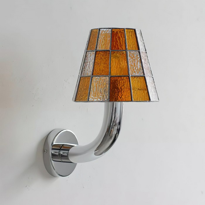 Vägglampan Fun Guy ger en lekfull twist till klassiskt hantverk. Dess böjda kromarm passar enkelt ihop med en mosaikliknande glasskärm, vilket skapar en balans mellan fantasi och sofistikering. Varje panel fångar ljuset på olika sätt – oavsett om det är i varm bärnsten, kallblå eller kristallklar – och ger ett mjukt, inbjudande sken som livar upp vilket rum som helst.