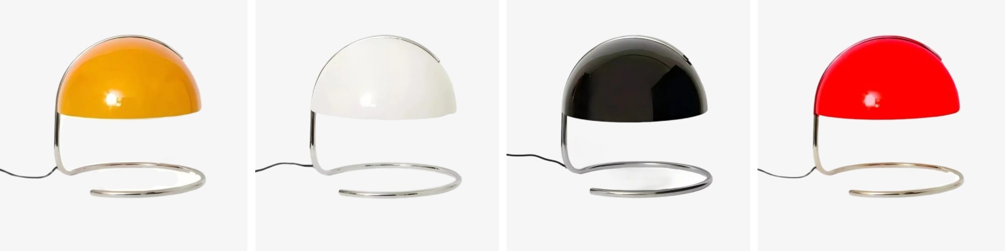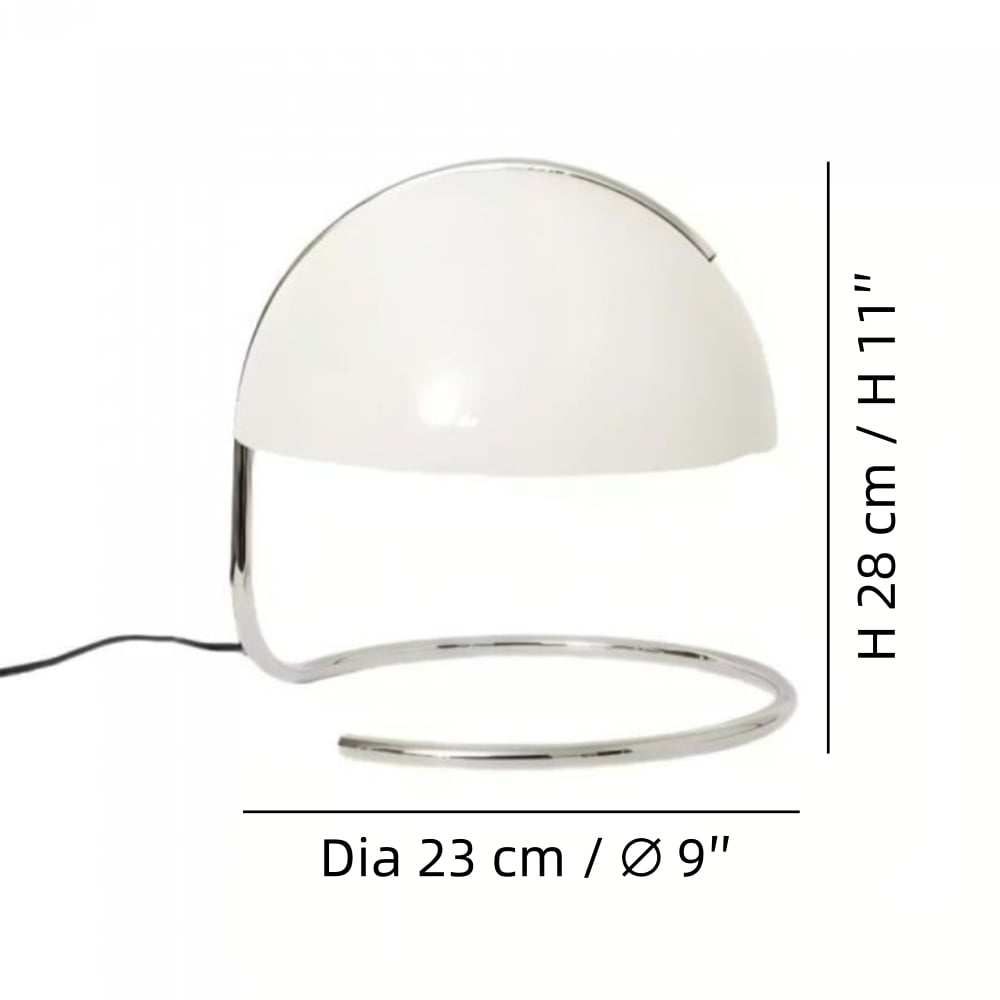 Bauhaus Half Globe-bordslampa är hyllad för sin eleganta och minimalistiska design. Med en kromad rörformad ram influerad av italiensk postmodern estetik, är den prydd med livfulla, lekfulla färger som gör den till ett slående mittpunkt.