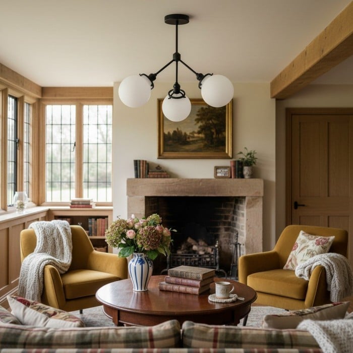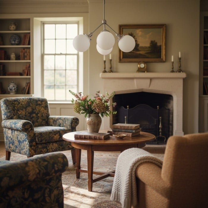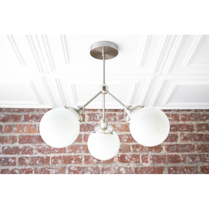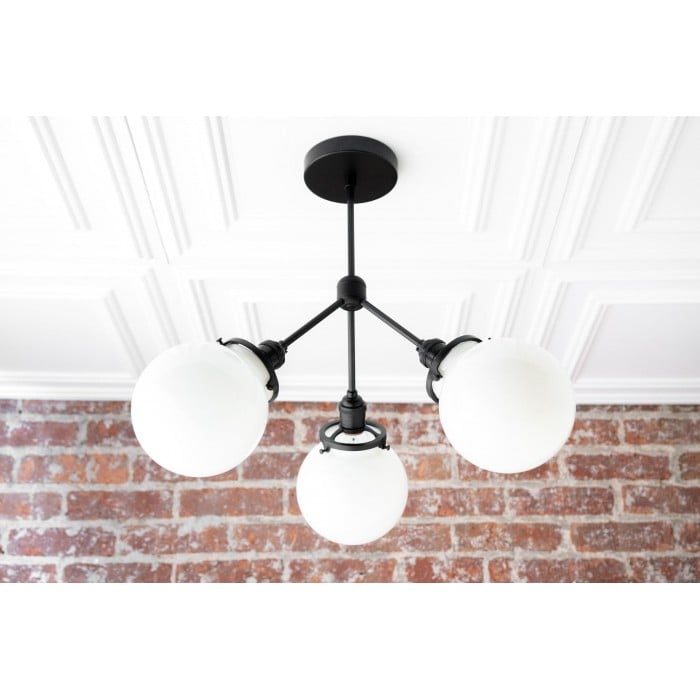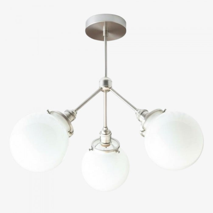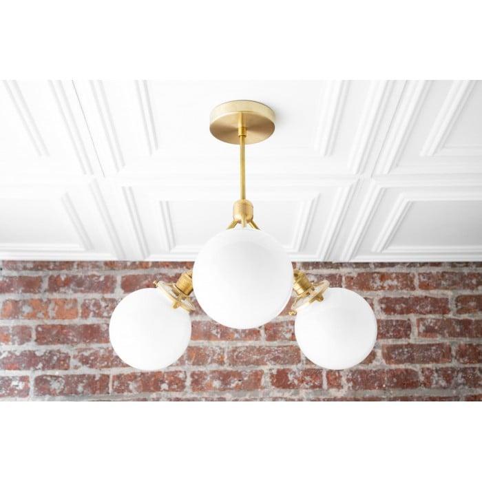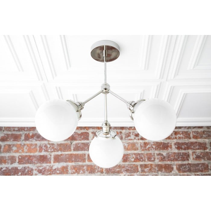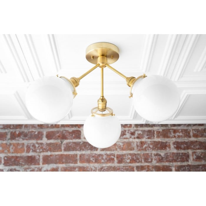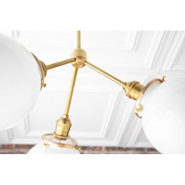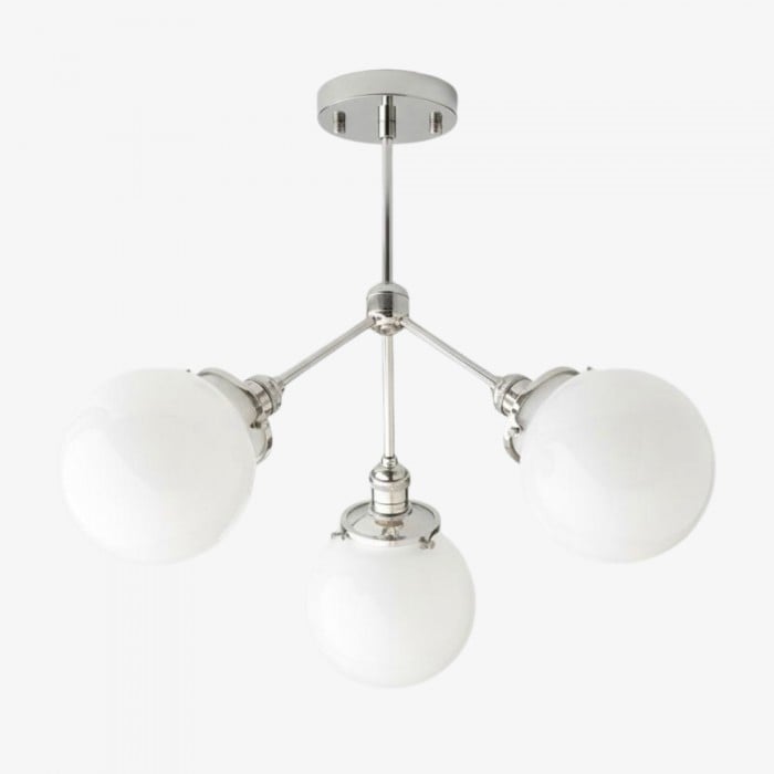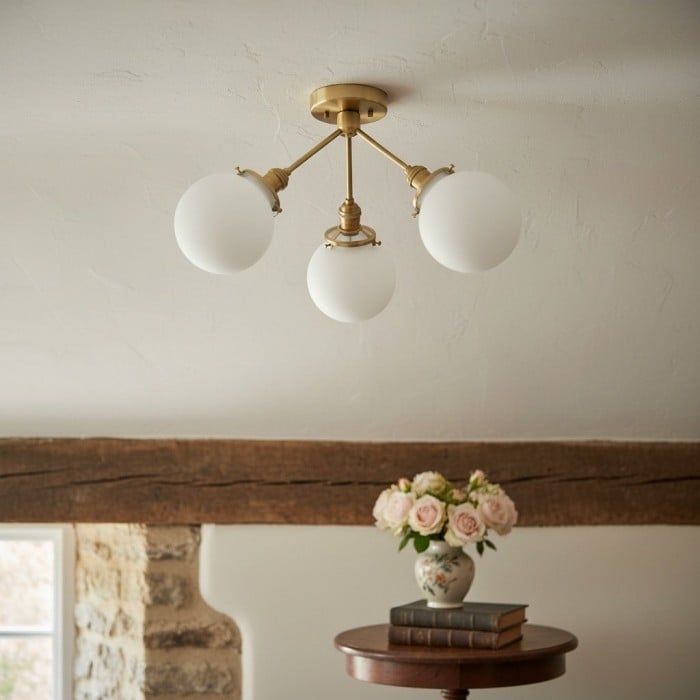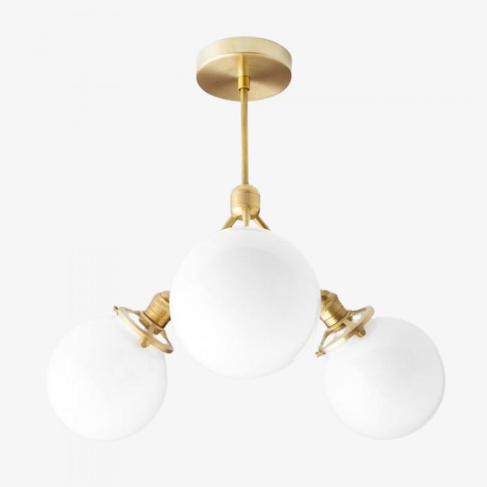 Glorica glaskrona blandar modern enkelhet med vintage-attraktion. Denna halvinfällda taklampa är tillverkad med en mässingsarmatur och slätt opalglas och skapar ett varmt och inbjudande sken. Den är justerbar i höjd och finns i flera utföranden, och är utformad för att komplettera matsalar, kök eller entréer.