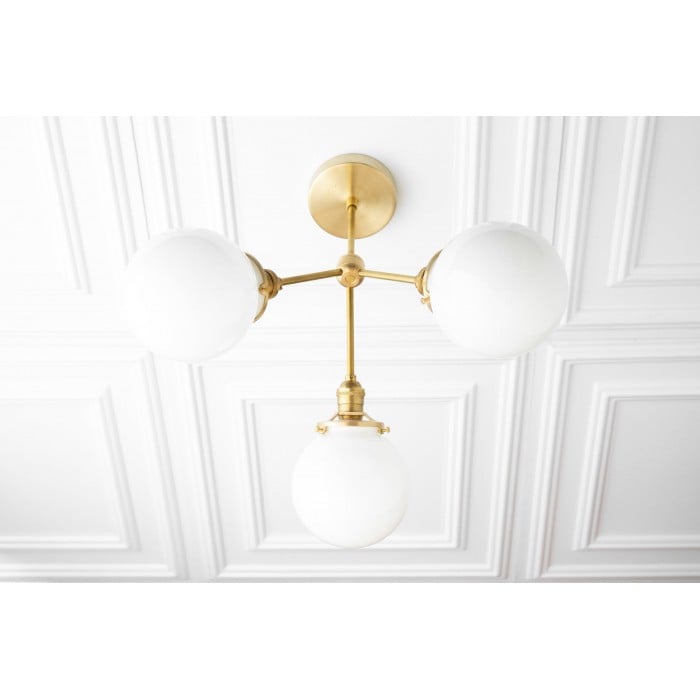 Glorica Glaskrona - Mässingsglobtaklampa med opalskärm HL1692
