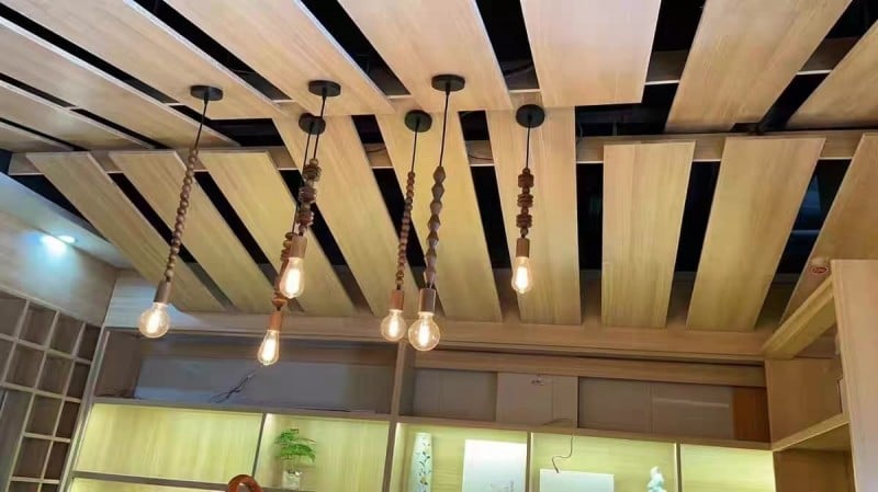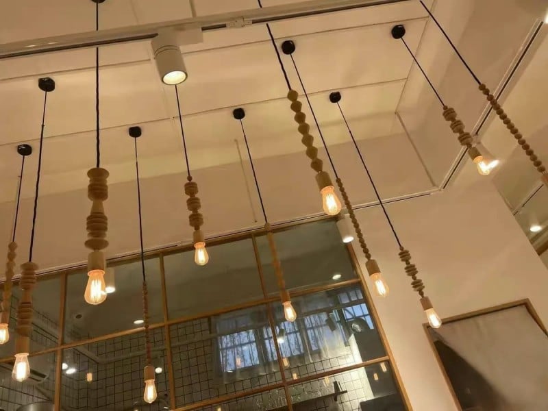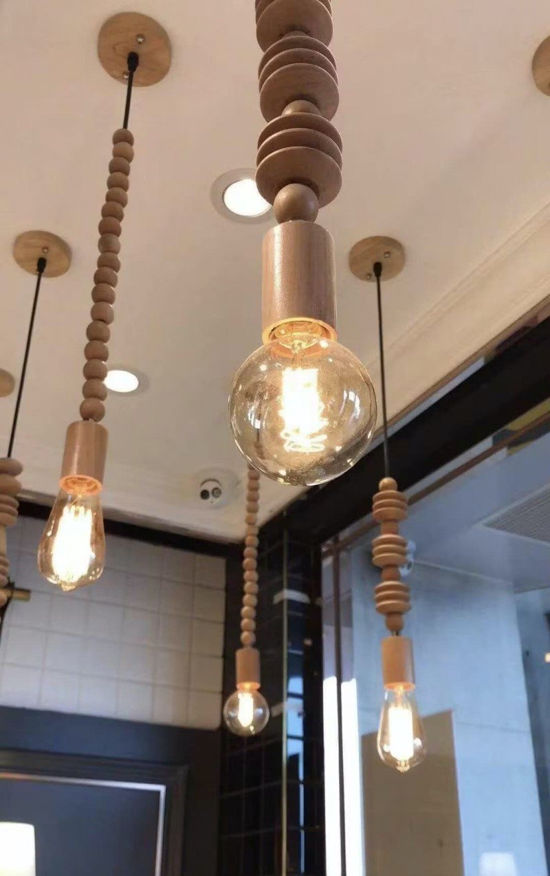Hänglampa med träpärlor - Retro ljusslinga för vardagsrum HL1063